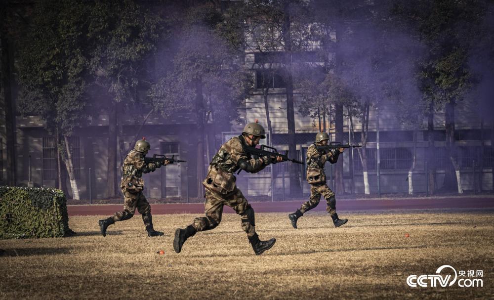 比武现场,红蓝双方激烈“交火”,突击队员们攀高墙、钻涵管,现场枪声、爆炸声不断;滚滚烟尘外,多种型号的电子对抗装备悄然而动,与敌人电磁空间内展开无声较量。