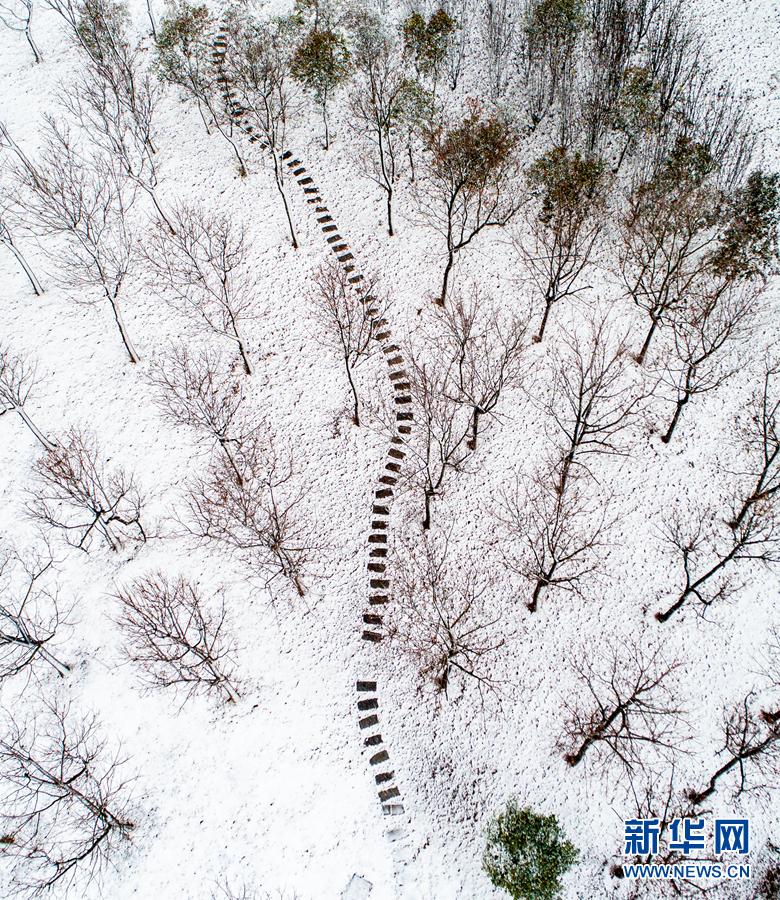 12月29日,在安徽省淮北市烈山区南湖生态公园航拍的雪景。