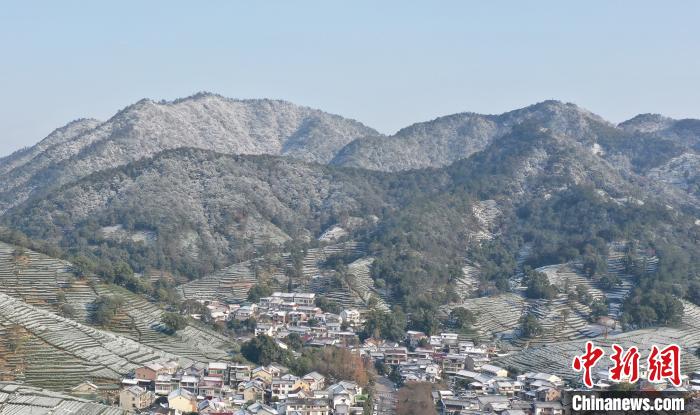 图为:杭州梅家坞附近的山头被白雪覆盖。 王刚 摄