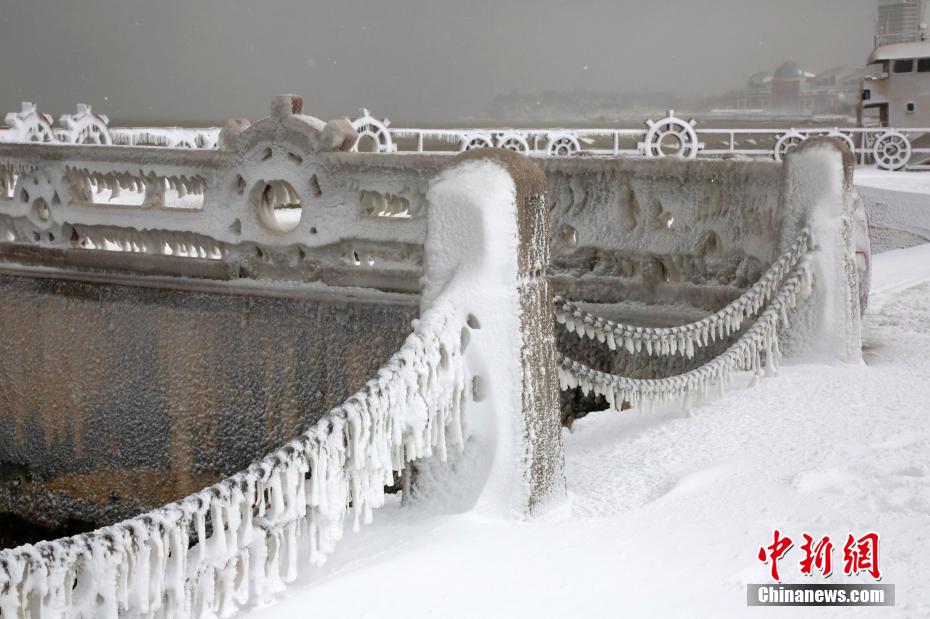 烟台海滨现冰凌景观