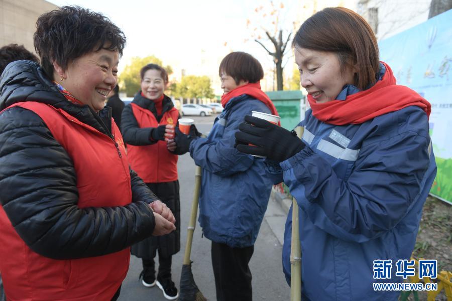 12月31日,“三合大姐巾帼志愿团”志愿者为社区保洁人员送来早餐。