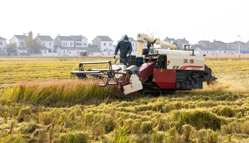 江苏南京:收割晚稻
