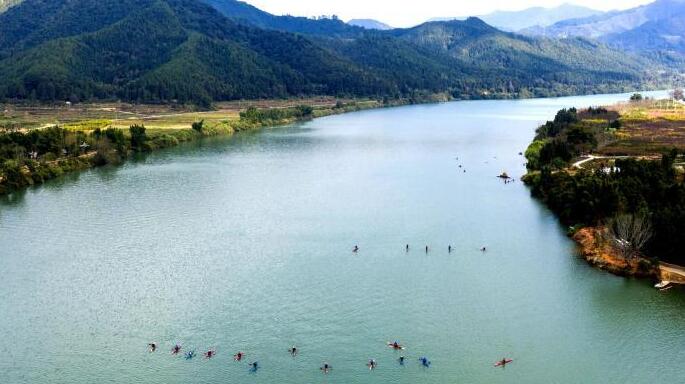 福建将乐:皮划艇学员泛舟绿水青山间