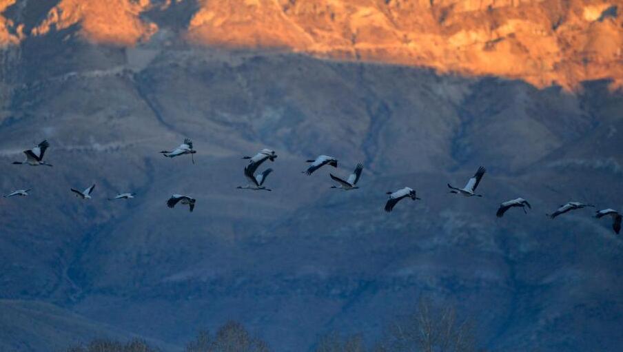 高原“吉祥鸟”黑颈鹤在拉萨林周县越冬觅食