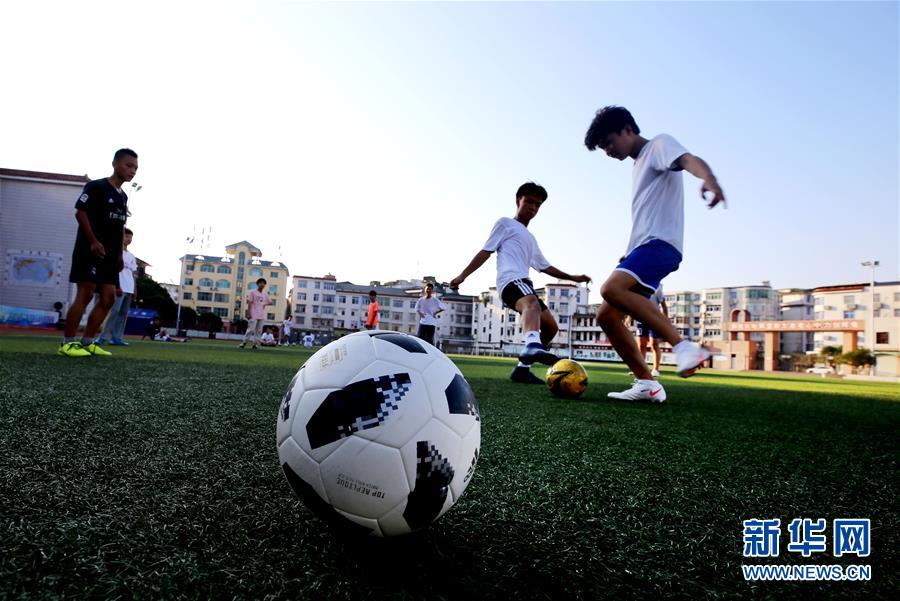 8月4日,孩子们在江西省宜春市靖安三中运动场进行足球对抗锻炼。 暑假期间,江西省宜春市靖安县各地中小学校运动场馆24小时免费开放,并组织体育老师和青年志愿者无偿教学,让孩子们通过体育锻炼“动起来”,在强身健体中丰富假期生活。 新华社发(徐仲庭 摄)