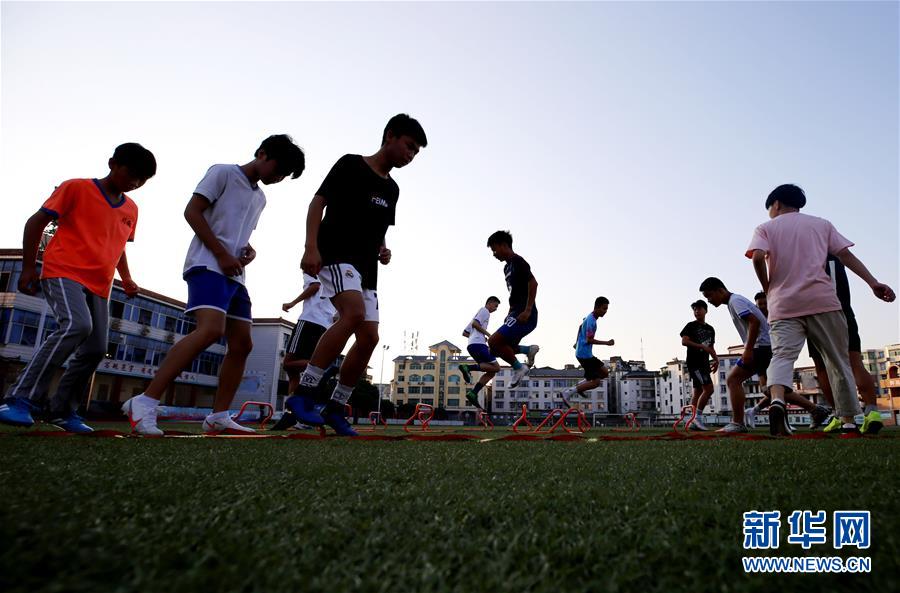 8月4日,孩子们在江西省宜春市靖安三中运动场进行基本功训练。 暑假期间,江西省宜春市靖安县各地中小学校运动场馆24小时免费开放,并组织体育老师和青年志愿者无偿教学,让孩子们通过体育锻炼“动起来”,在强身健体中丰富假期生活。 新华社发(徐仲庭 摄)