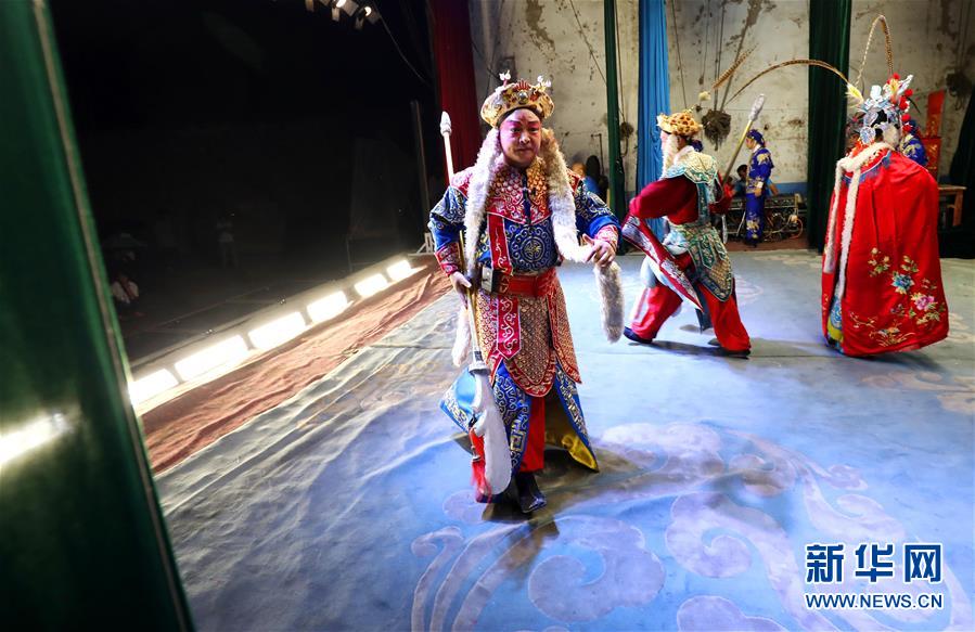 8月5日,在河北省石家庄市井陉县上安镇头泉村的村民文化广场,井陉晋剧院戏曲演员在进行经典晋剧曲目《杨业归宋》演出。 8月5日,河北省井陉晋剧院在石家庄市井陉县上安镇头泉村举行了2020年“暑期戏曲惠民生”首场下乡展演活动。此次惠民展演将在石家庄市西部山区农村上演60余场次,给山区群众带来《杨业归宋》、《血战金沙滩》、现代戏《李保国》等经典戏曲剧目。 近年来,河北省石家庄市井陉县通过开展国家级非物质文化遗产项目——井陉晋剧进山村、进校园、进社区等送戏惠民活动,有力促进非遗文化发展,让更多人了解传统戏曲文化。 新华社发(梁子栋 摄)