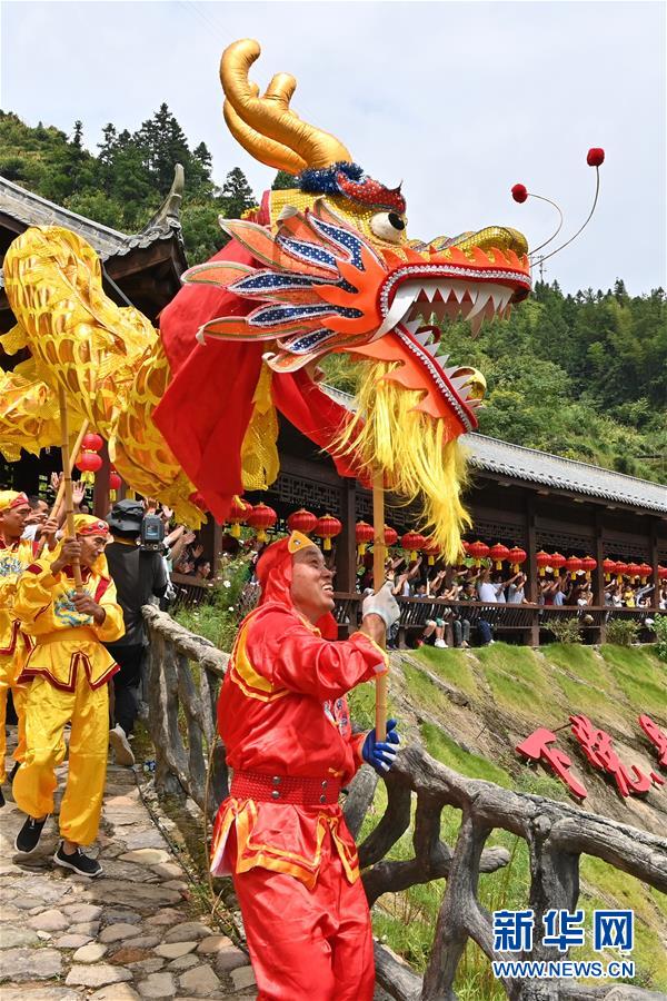 8月5日,福建省宁德市寿宁县下党乡群众在进行舞龙表演。 近日,以“决胜全面建成小康社会、决战脱贫攻坚”为主题的2020年“我们的中国梦”文化进万家、“心连心”慰问演出活动走进福建省宁德市,文艺家们分别深入到宁德寿宁、霞浦、福安、福鼎等地的山乡渔村,与当地群众互动联欢。 新华社记者 姜克红 摄