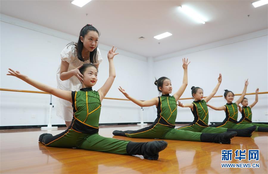 8月5日,内丘县文化馆老师指导孩子们练习舞蹈。新华社记者 朱旭东 摄