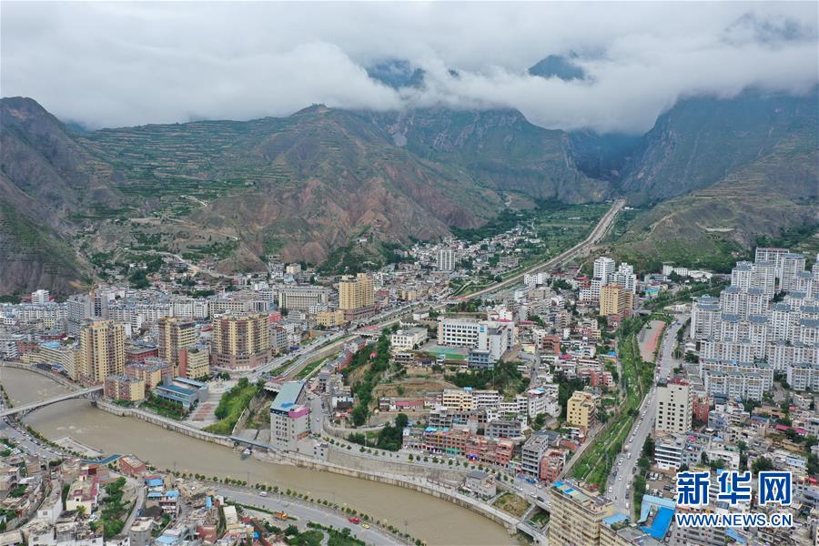这是7月14日拍摄的舟曲县老县城(无人机照片)。新华社记者 杜哲宇 摄
