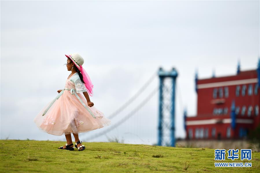 8月8日,小游客在贵州省龙里油画大草原上游玩。 近日,贵州省黔南布依族苗族自治州龙里县境内气候宜人,龙里油画大草原、“龙门镇”武侠文化主题景区等景点吸引众多游客前来观光旅游。 新华社记者 杨文斌 摄