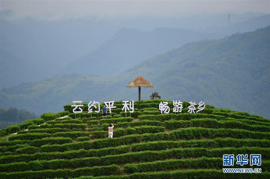 游客在安康市平利县老县镇蒋家坪村茶园游览(7月24日摄)。新华社记者 邵瑞 摄