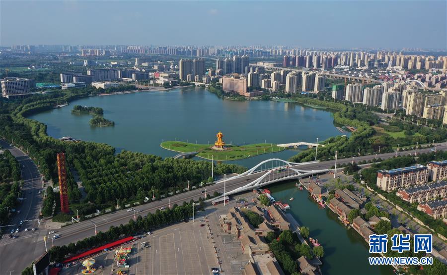 8月9日拍摄的唐山市丰南区惠丰湖景色(无人机照片)。 近年来,河北省唐山市丰南区全力推动“全域治水、清水润城”工程,形成了以唐津运河、人民公园生态廊道等以健身、休闲、旅游功能于一体的人水相亲、城水相依的景观环境,为绿色发展注入活力。 新华社记者 杨世尧 摄