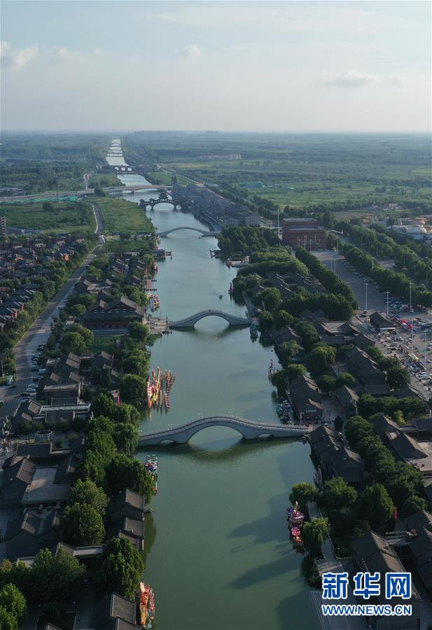 8月9日拍摄的唐山市丰南区唐津运河景色(无人机照片)。 近年来,河北省唐山市丰南区全力推动“全域治水、清水润城”工程,形成了以唐津运河、人民公园生态廊道等以健身、休闲、旅游功能于一体的人水相亲、城水相依的景观环境,为绿色发展注入活力。 新华社记者 杨世尧 摄