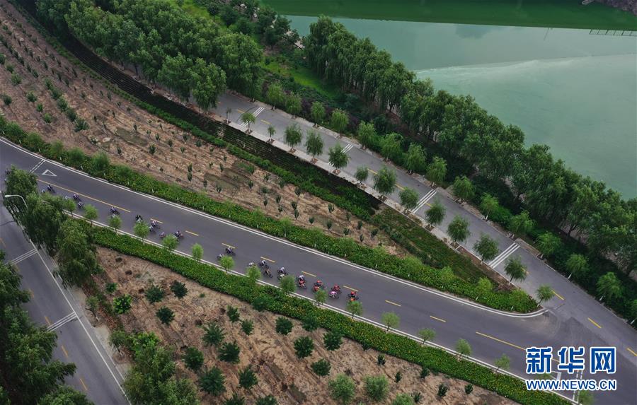 自行车爱好者在唐山市丰南区唐津运河景观大道骑行(7月31日摄,无人机照片)。 近年来,河北省唐山市丰南区全力推动“全域治水、清水润城”工程,形成了以唐津运河、人民公园生态廊道等以健身、休闲、旅游功能于一体的人水相亲、城水相依的景观环境,为绿色发展注入活力。 新华社记者 杨世尧 摄
