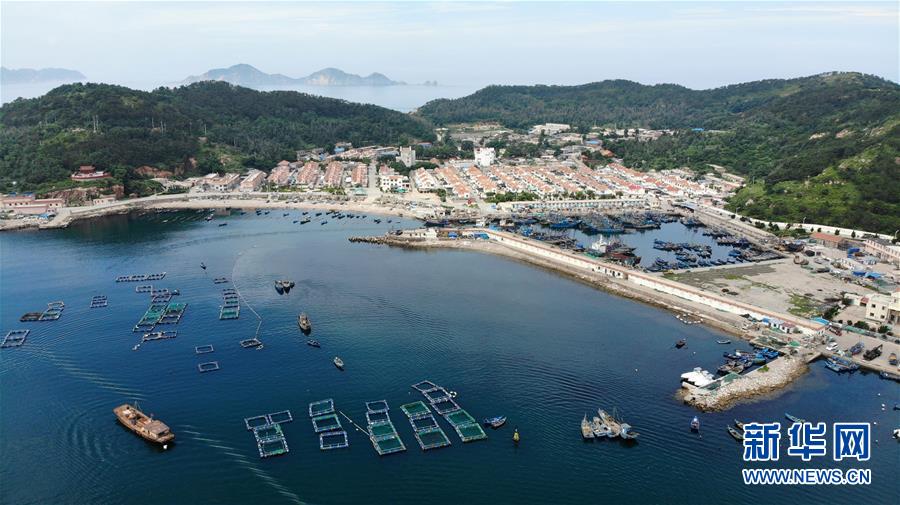 这是8月9日拍摄的山东省长岛综合试验区南隍城岛渔港码头(无人机照片)。 近年来,山东省长岛综合试验区不断加大生态保护力度,区域内诸岛尽显秀美的美丽生态海岛自然风貌。 新华社记者 王凯 摄