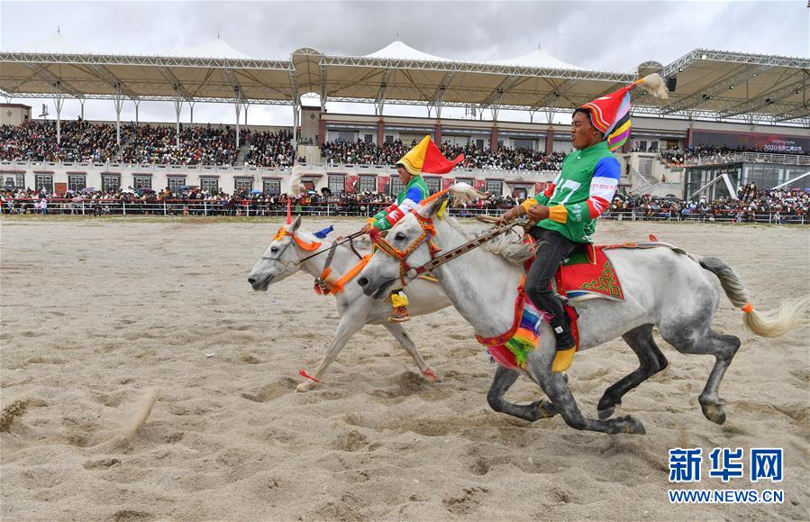 8月10日,骑手驰骋在当雄县赛马场。新华社记者 晋美多吉 摄