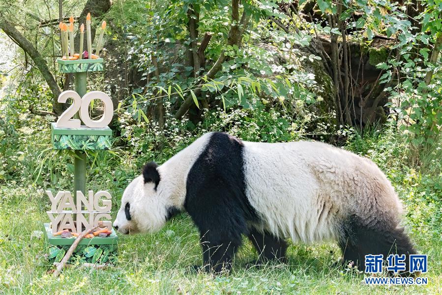 8月9日,在奥地利维也纳美泉宫动物园内,大熊猫“阳阳”准备享用生日礼物。 近日,奥地利维也纳美泉宫动物园为生活于此的大熊猫“阳阳”庆祝20岁生日。“阳阳”自2003年来到维也纳美泉宫动物园以来,一直是这里的“明星”,深受人们喜爱。 新华社发(丹尼尔·祖潘克摄)