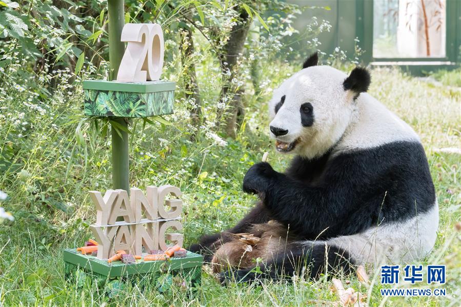 8月9日,在奥地利维也纳美泉宫动物园内,大熊猫“阳阳”享用生日礼物。 近日,奥地利维也纳美泉宫动物园为生活于此的大熊猫“阳阳”庆祝20岁生日。“阳阳”自2003年来到维也纳美泉宫动物园以来,一直是这里的“明星”,深受人们喜爱。 新华社发(丹尼尔·祖潘克摄)