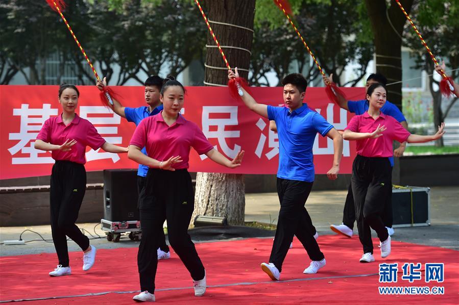 8月11日,河北省石家庄市评剧院一团的演员在正定景区为当地群众和游客演出。 连日来,河北省石家庄市组织市属评剧院一团、京剧团等6家院团开展“走基层惠民演出”,为广大群众送上丰盛的精神文化大餐。此次惠民演出走进景区,节目涵盖了京剧、评剧、河北梆子、丝弦、歌舞等多种艺术形式,旨在以文化促旅游,以旅游带动文化,做到文旅深度融合。 新华社发(张晓峰 摄)