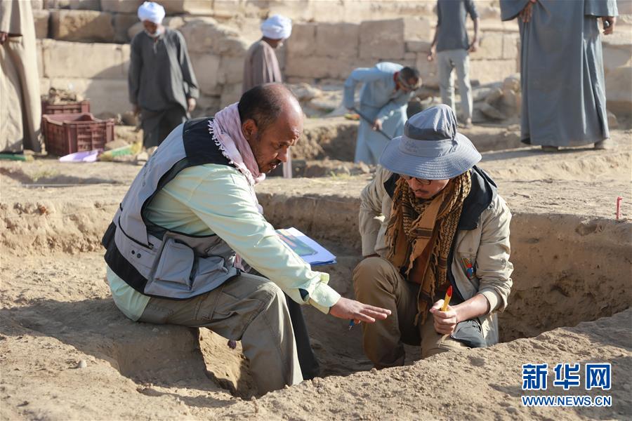2019年12月14日,在埃及卢克索,中埃卢克索孟图神庙联合考古项目成员在现场工作。 新华社发