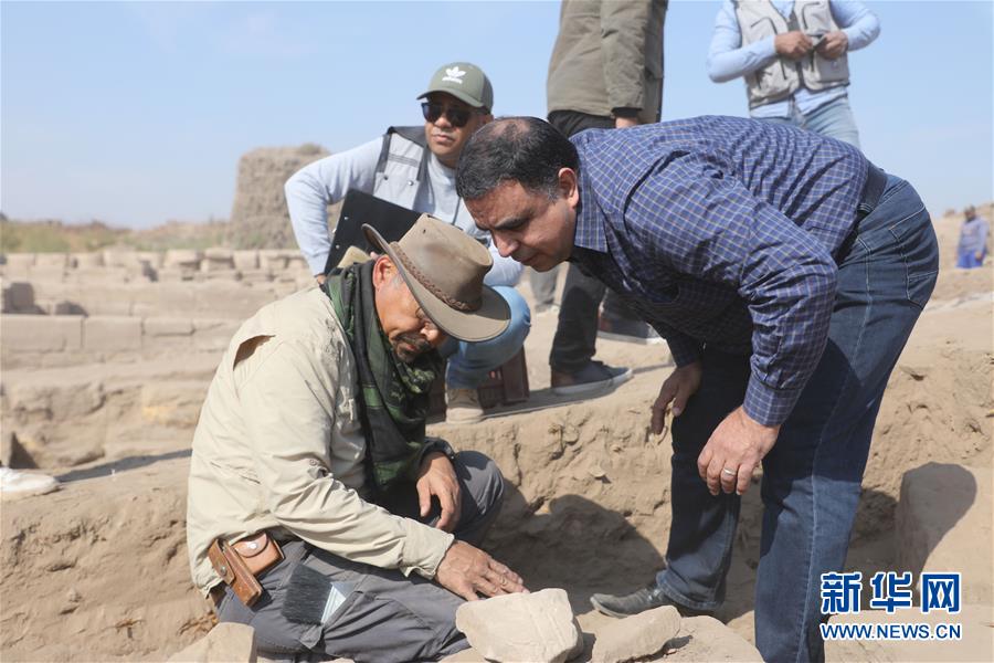 2020年1月12日,在埃及卢克索,中埃卢克索孟图神庙联合考古项目中方执行领队、中国社会科学院考古研究所副研究员贾笑冰(左)在现场工作。 新华社发