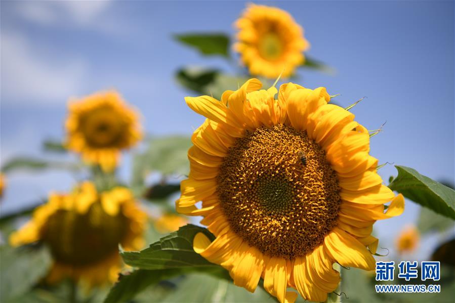 这是8月13日在景泰县寺滩乡拍摄的向日葵花海。 初秋时节,位于甘肃省白银市景泰县寺滩乡的十万亩向日葵竞相绽放,金黄的葵花张开“笑脸”,迎接丰收。据介绍,当地近年来按照“标准化生产、规模化经营、企业化管理、品牌化运作”的现代农业发展理念,依托集中连片、平坦开阔的旱砂地资源,在寺滩乡建设食葵标准化生产基地,现种植面积已达十万亩,初步形成集种植、加工、科技、观光于一体的国家现代农业产业园。 新华社记者 范培珅 摄