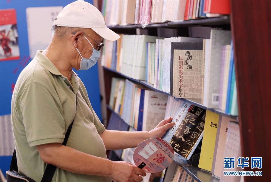8月13日,一名读者在书展上挑选书籍。 8月12日,2020上海书展在上海展览中心开幕。全国各大出版社汇聚书展现场,不同年龄层的读者都能徜徉其中,感受书香魅力。 新华社记者 方喆 摄