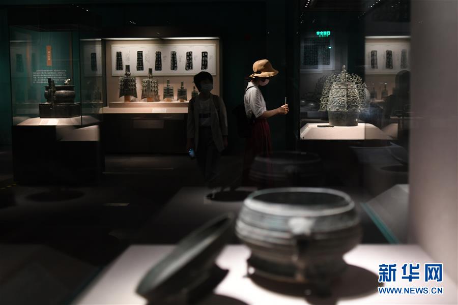 8月14日,观众在参观展览。 当日,“宅兹中国——宝鸡出土青铜器与金文精华”展在北京中国国家博物馆开幕。本次展览精选青铜器文物140余件,分为金文的艺术、金文中的故事、金文中的智慧三个单元,系统展示宝鸡及其周边地区出土青铜器与金文丰富深厚的文化内涵,彰显中华文化源远流长的独特魅力。 新华社记者 金良快 摄