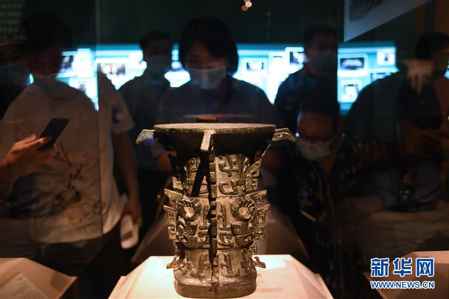 8月14日,观众在参观西周早期礼器何尊。 当日,“宅兹中国——宝鸡出土青铜器与金文精华”展在北京中国国家博物馆开幕。本次展览精选青铜器文物140余件,分为金文的艺术、金文中的故事、金文中的智慧三个单元,系统展示宝鸡及其周边地区出土青铜器与金文丰富深厚的文化内涵,彰显中华文化源远流长的独特魅力。 新华社记者 金良快 摄