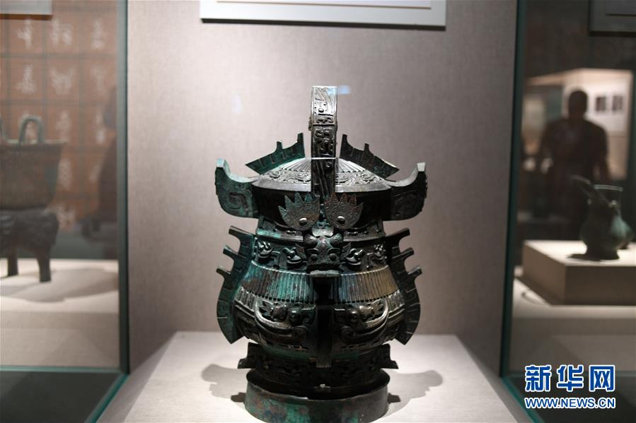 这是展览展出的西周早期青铜器户卣(8月14日摄)。 8月14日,“宅兹中国——宝鸡出土青铜器与金文精华”展在北京中国国家博物馆开幕。本次展览精选青铜器文物140余件,分为金文的艺术、金文中的故事、金文中的智慧三个单元,系统展示宝鸡及其周边地区出土青铜器与金文丰富深厚的文化内涵,彰显中华文化源远流长的独特魅力。 新华社记者 金良快 摄
