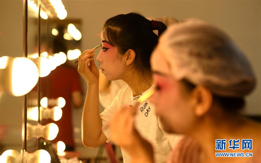 8月14日,在河北石家庄大剧院,石家庄市评剧院一团演员在化装。 8月14日,河北省石家庄市在石家庄大剧院启动首场惠民精品剧目演出活动。本次活动持续到9月底,将为市民送上涵盖京剧、评剧、河北梆子等剧种的18场精品传统剧目的演出。 据了解,此次惠民演出活动严格执行有关防疫规定要求,每场演出观众人数不超过剧场座位数的50%。 新华社发(陈其保 摄)