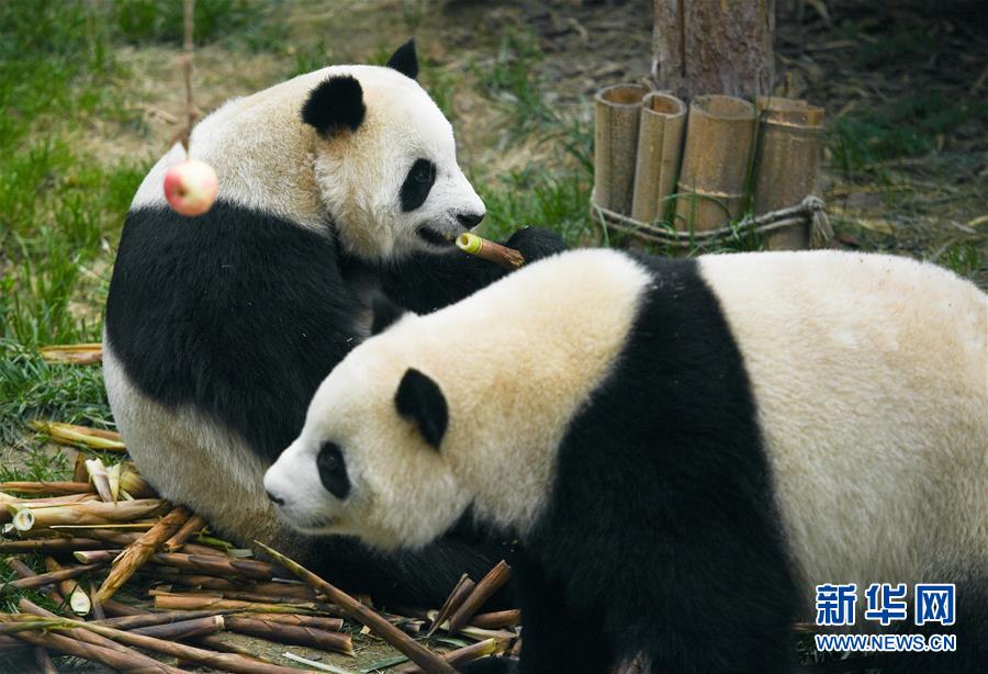 8月16日,大熊猫“奇果”(左)和“园满”在西宁熊猫馆内玩耍。 青海省西宁熊猫馆的四只大熊猫已经在西宁生活了一年多,在工作人员的悉心照顾下,已经适应了青藏高原的气候,身体各项指标正常。 新华社记者 薛玉斌 摄