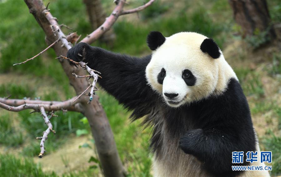 8月16日,大熊猫“园满”在西宁熊猫馆内玩耍。 青海省西宁熊猫馆的四只大熊猫已经在西宁生活了一年多,在工作人员的悉心照顾下,已经适应了青藏高原的气候,身体各项指标正常。 新华社记者 薛玉斌 摄