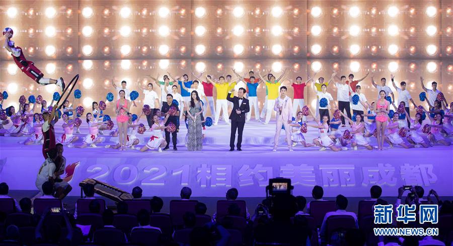 8月18日,演员在倒计时一周年活动现场表演。 当日,成都大运会组委会在成都市广播电视台演播大厅举行第31届世界大学生夏季运动会倒计时一周年活动。 新华社记者 江宏景 摄