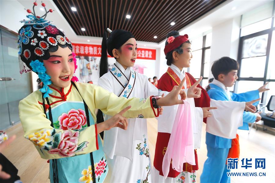 8月18日,在山东青岛市即墨区潮海街道古城社区柳腔公益课堂上,小学生在学习唱腔。 暑假期间,山东青岛市即墨区潮海街道古城社区开展“非遗进社区、欢乐度暑期”公益课堂活动,国家级非物质文化遗产项目即墨柳腔传承人、柳腔艺人们来到社区对学生进行唱腔、表演技巧、登台装束等方面的指导,让孩子们学习传承非遗戏曲艺术,度过一个充实又有意义的假期。 新华社发(梁孝鹏 摄)