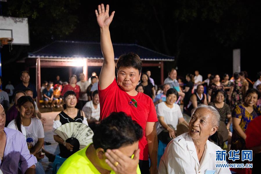 8月19日,在宁乡市坝塘镇沩乌村,村民在“屋场夜话”会上举手示意发言。 当日,“杜绝舌尖浪费,倡导节约风尚”的“屋场夜话”会在湖南省宁乡市坝塘镇沩乌村举行。7月份以来,宁乡市多个乡镇陆续组织当地村民和扶贫干部利用晚上休闲时间召开“屋场夜话”会,围绕脱贫攻坚、乡村治理、集体经济发展等方面进行讨论,倾听村民们的心声和诉求,回应群众提出的问题。 近一个月来,宁乡市已召开“屋场夜话”1300余场,9400余人次的驻村和结对帮扶干部参加,促进解决水果滞销、自来水入户、道路修护、水塘修缮等多方面的问题。 新华社记者 陈思汗 摄