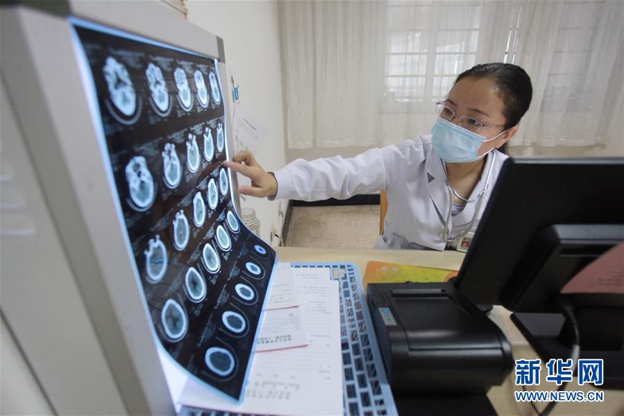 8月19日,在江苏扬州大学附属医院,一名医生为患者诊断病情。 当日是中国医师节,各地医师坚守岗位,在工作中度过自己的节日。 新华社发(孟德龙 摄)