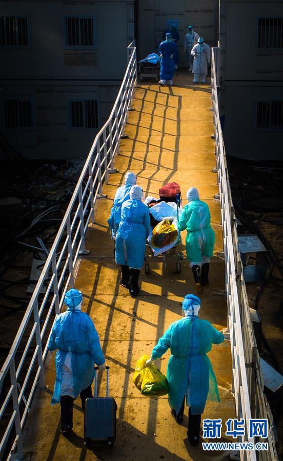 医护人员走向武汉火神山医院病房(2月4日摄)。新华社记者 肖艺九 摄