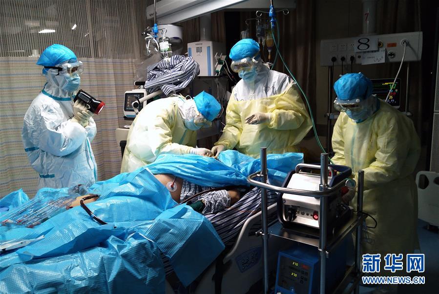 2月6日凌晨,南昌大学第一附属医院象湖院区重症监护室的医护人员在救治一名新冠肺炎重症患者。新华社发(江榕摄)