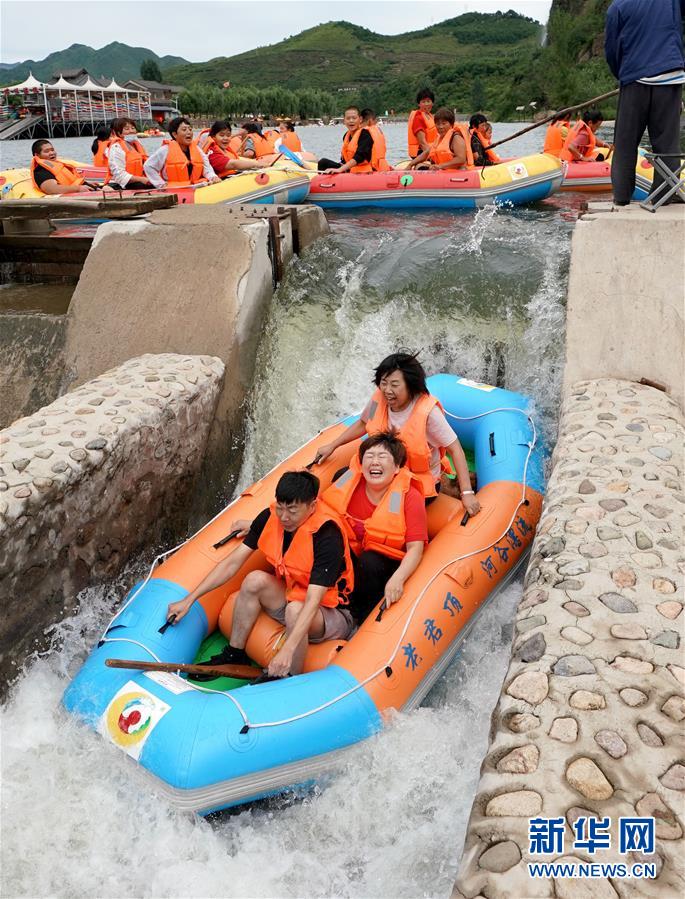 8月20日,游客在秦皇岛市老君顶景区体验漂流。 七月以来,河北秦皇岛市亲近自然的体验式旅游迅速升温,受到游客的青睐。 新华社记者 王毓国 摄