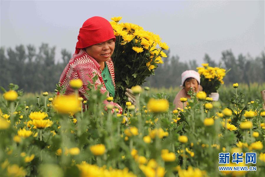 8月23日,在临西县吕寨镇石佛寺村菊花种植基地,种植户在采收菊花。 近日,河北省临西县吕寨镇石佛寺村菊花种植基地的200多亩菊花进入收获期,种植户正在加紧采收。据悉,菊花种植是临西县扶持推广的高效农业示范项目,采取“基地+农户”模式,产出的鲜切菊花销往天津、武汉、郑州等城市的鲜花批发市场和礼仪公司,成为当地群众增收的重要途径。 新华社发(张玉坤 摄)