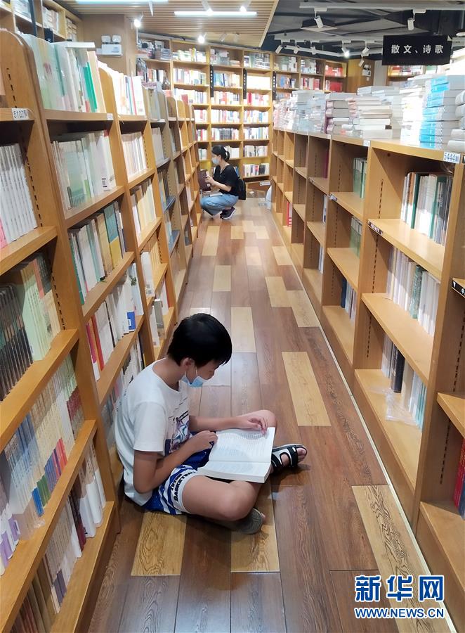 8月24日,读者在广州购书中心里看书。 2020南国书香节举办期间,不少广州市民走进书店,选购、阅读书籍,品味书香。本届南国书香节于8月21日开幕,将持续至31日。 新华社记者 卢汉欣 摄