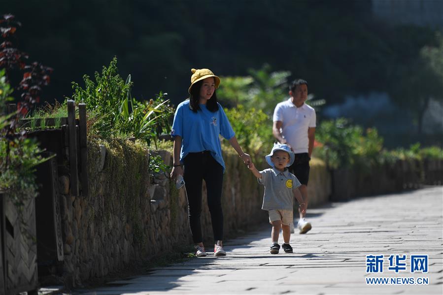 9月6日,游客在石舍村游览。 近年来,浙江省桐庐县以富春江镇的芦茨、茆坪、石舍三个村及严子陵、白云源两个景区为基点,以乡村传统要素为体验内容,打造总面积约62平方公里的富春江(芦茨)乡村慢生活体验区,并逐步形成一批特色民宿品牌。 新华社记者 黄宗治 摄