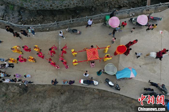 郎骑白马,女乘花轿,传统婚俗再现江西铜鼓山村。 王昊阳 摄