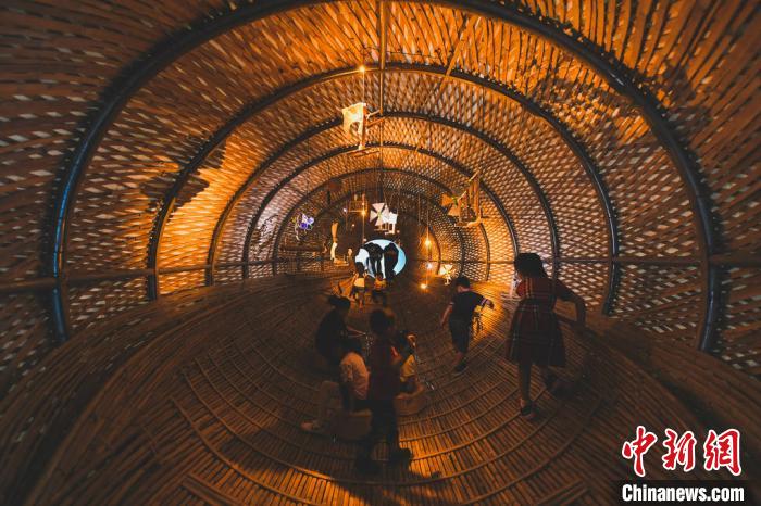 图为艺术家设计的能让儿童玩耍的编制装置。原美术馆供图