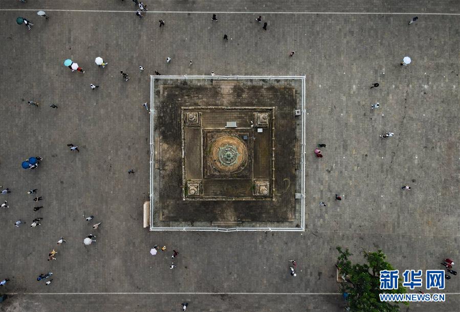 10月3日,游客在昆明市官渡古镇游览(无人机照片)。 各地的人们以丰富多彩的方式欢度国庆、中秋假期。 新华社发(王冠森 摄)