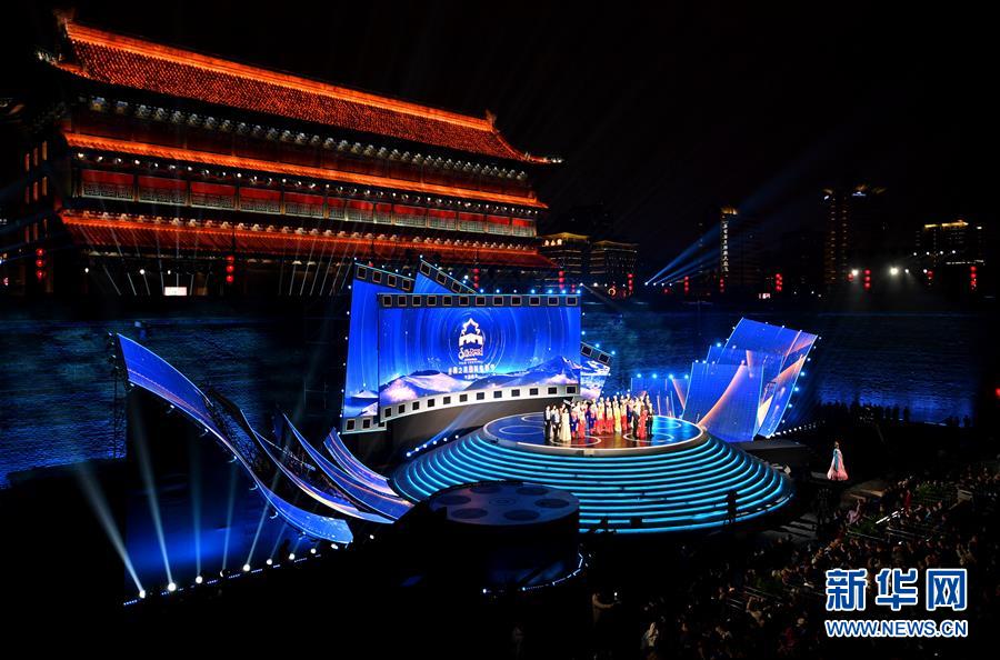 第七届丝绸之路国际电影节开幕式现场(10月11日摄)。 当日,第七届丝绸之路国际电影节在陕西西安开幕。本届电影节以“丝路连接世界、电影和合文明”为主题,设置了影片特别推荐、电影展映、电影论坛等多项活动。 新华社记者 张博文 摄