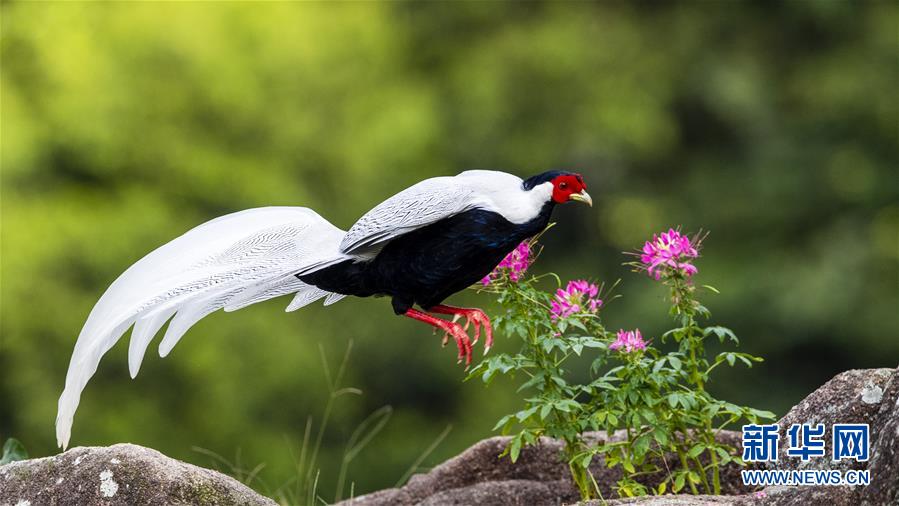 10月14日,在南靖县鹅仙洞国家级自然保护区,一只白鹇飞跃而起。 金秋时节,福建省南靖县鹅仙洞国家级自然保护区风景如画,数量逐年增多的野生白鹇漫步其间,成为当地新的自然景观。 新华社记者 梅永存 摄
