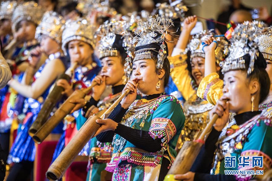 10月18日,演员在《情醉毛尖》歌舞剧中表演。 当日,民族歌舞剧《情醉毛尖》在贵州省黔南布依族苗族自治州都匀市文化馆上演。《情醉毛尖》围绕都匀毛尖茶文化,将“毛尖茶制作技艺”等非遗项目以及多民族歌舞元素融于其中,讲述人与茶、茶与山,相互依靠、共融共生的故事。 新华社记者 陶亮 摄